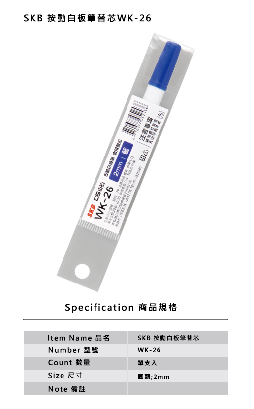 SKB 按動白板筆替芯WK-26