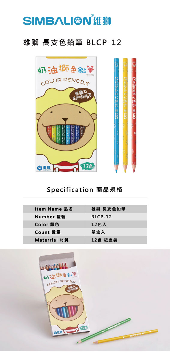 雄獅 長支色鉛筆 BLCP-12
