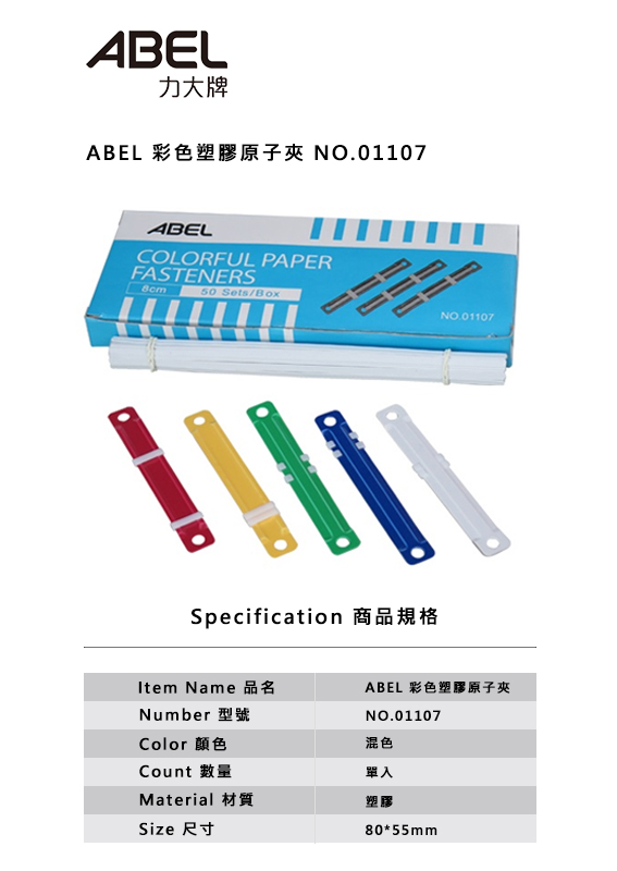 ★ABEL 彩色塑膠原子夾 01107