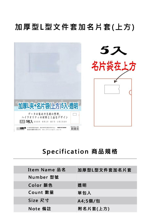 透明;A4;附名片套(上方);5個/包