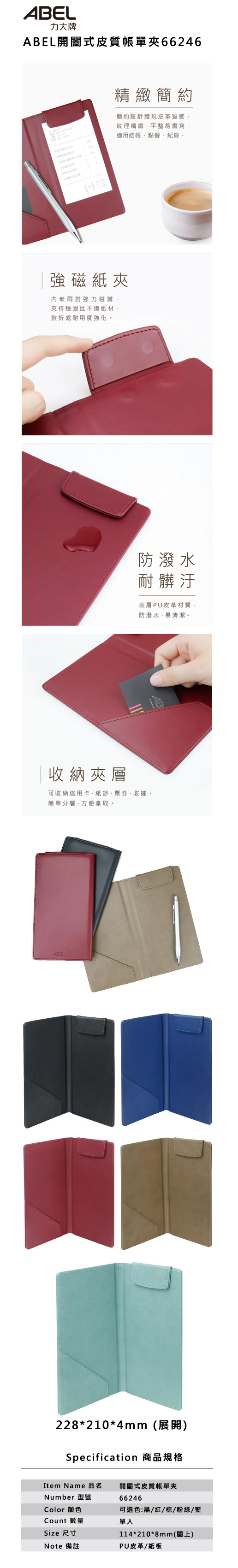 X*ABEL開闔式皮質帳單夾66246