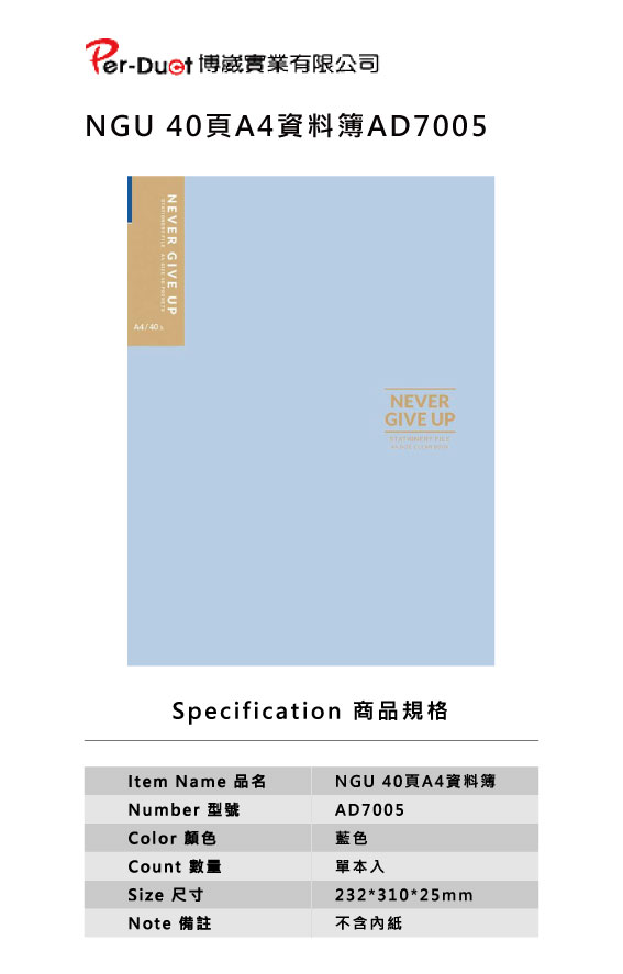 *!NGU 40頁A4資料簿 AD7005
