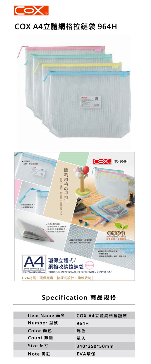 COX A4網格拉鏈袋 964H