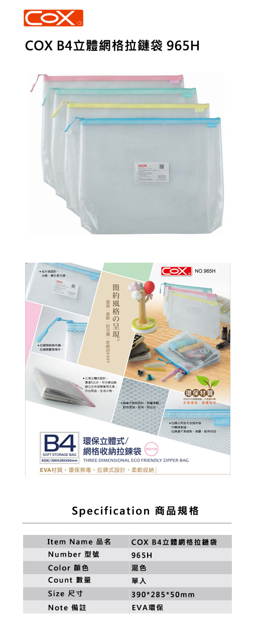 COX B4立體網格拉鏈袋965H