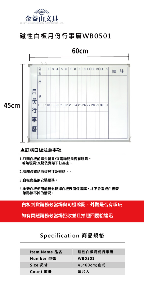 !*磁性白板月份行事曆WB0501