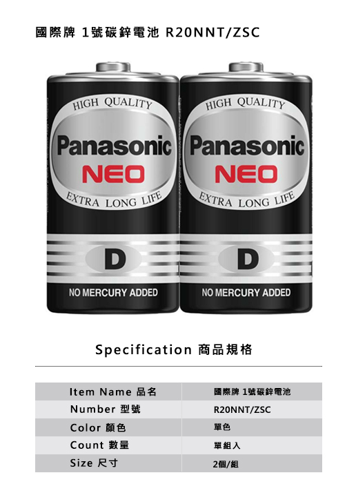 國際牌 1號碳鋅電池 R20NNT/ZSC